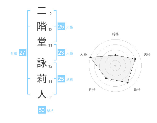 二階堂 詠莉人さんの天格は25画の4点!