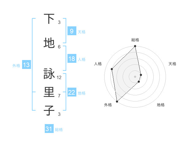 下地 詠里子さんを姓名の画数から五運を鑑定