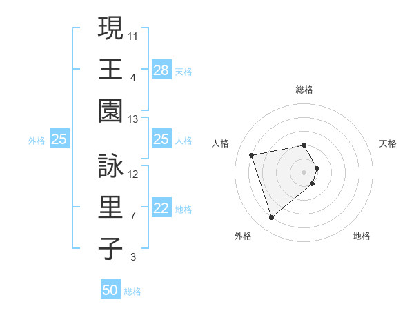 現王園 詠里子さんを姓名の画数から五運を鑑定
