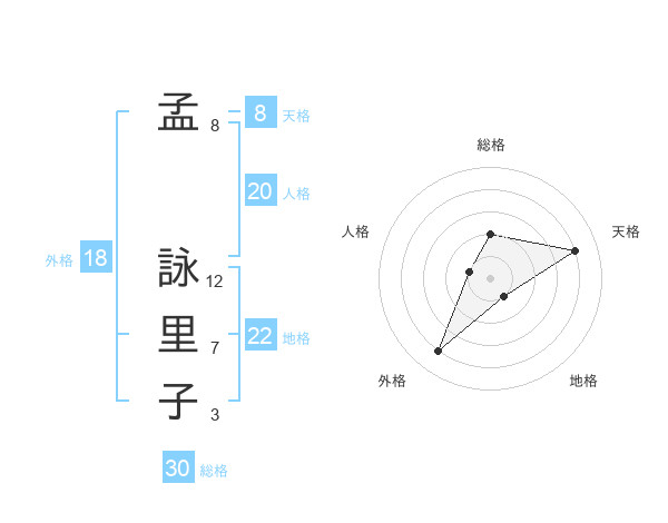 孟 詠里子さんを姓名の画数から五運を鑑定