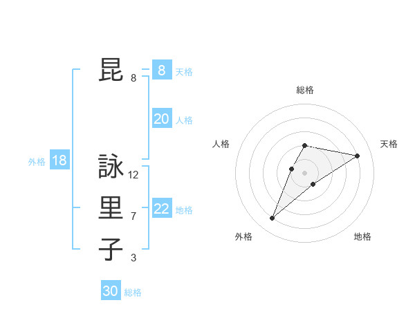 昆 詠里子さんの天格は8画の4点!