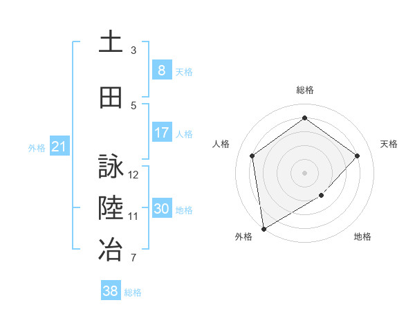 土田 詠陸冶さんを姓名の画数から五運を鑑定