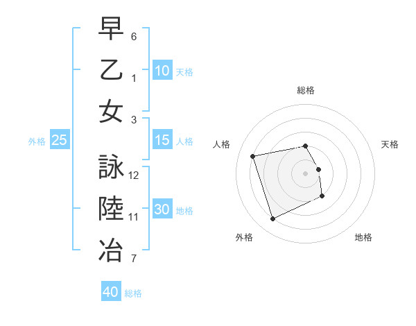 早乙女 詠陸冶さんの総格は40画の2点