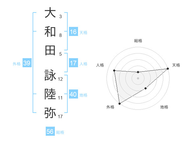 大和田 詠陸弥さんを姓名の画数から五運を鑑定