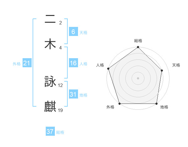 二木 詠麒さんを姓名の画数から五運を鑑定