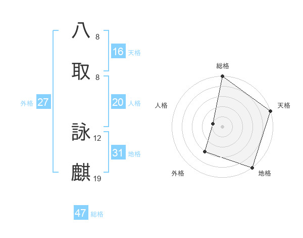 八取 詠麒さんを姓名の画数から五運を鑑定