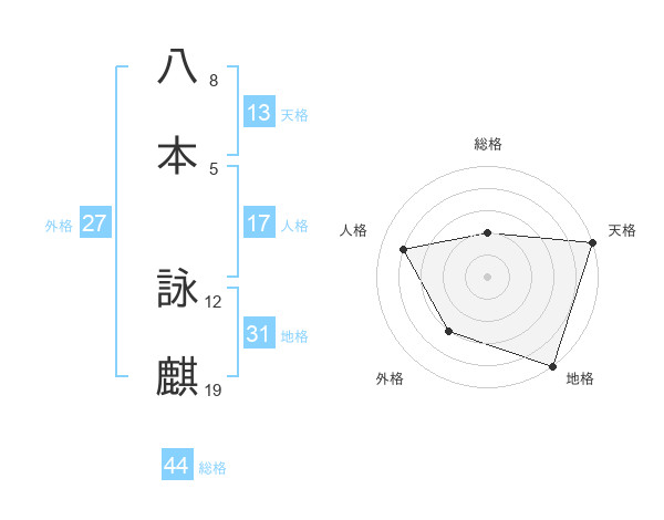八本 詠麒さんを姓名の画数から五運を鑑定
