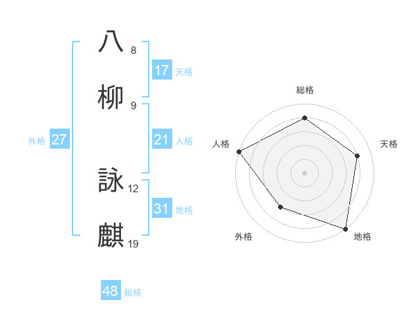 八柳 詠麒さんの総格は48画の4点!