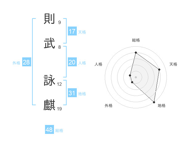 則武 詠麒さんを姓名の画数から五運を鑑定