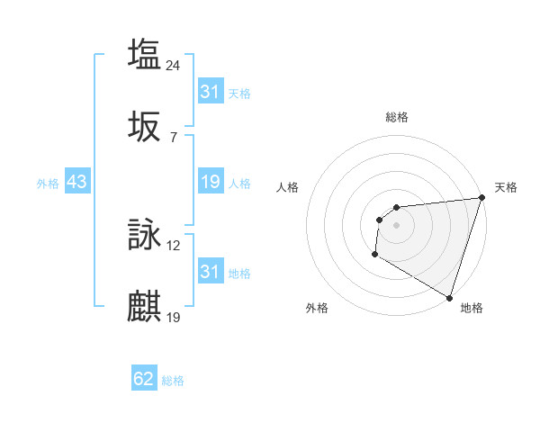 塩坂 詠麒さんの地格は31画の5点!