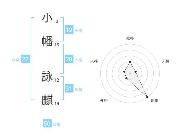 小幡 詠麒さんを姓名の画数から五運を鑑定