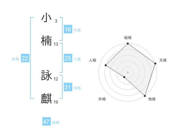 小楠 詠麒さんの総格は47画の5点!