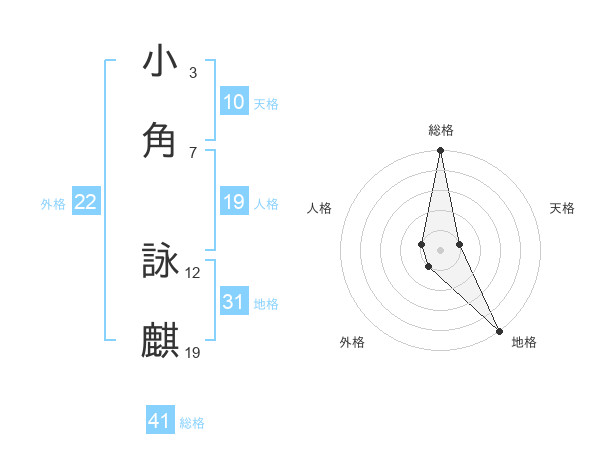 小角 詠麒さんの外格は22画の1点!