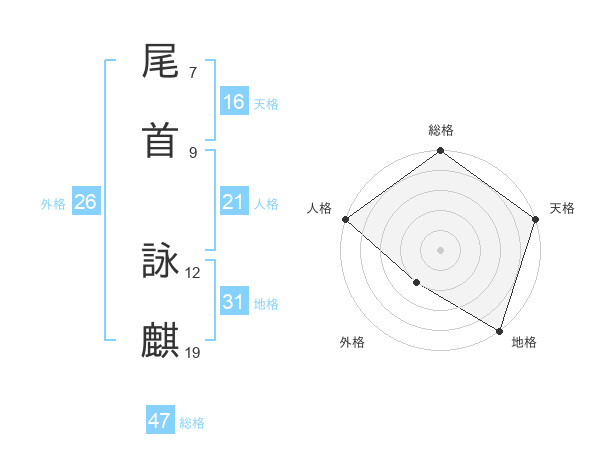 尾首 詠麒さんの総格は47画の5点!
