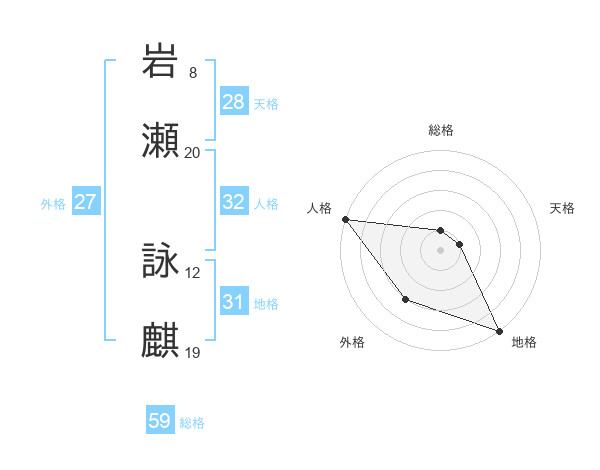 岩瀬 詠麒さんの総格は59画の1点!