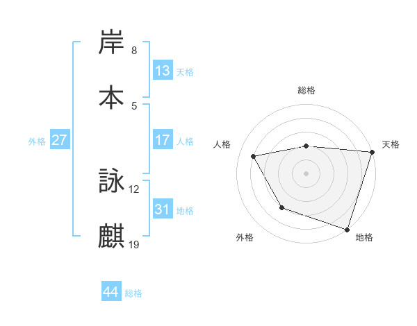 岸本 詠麒さんの総格は44画の2点!