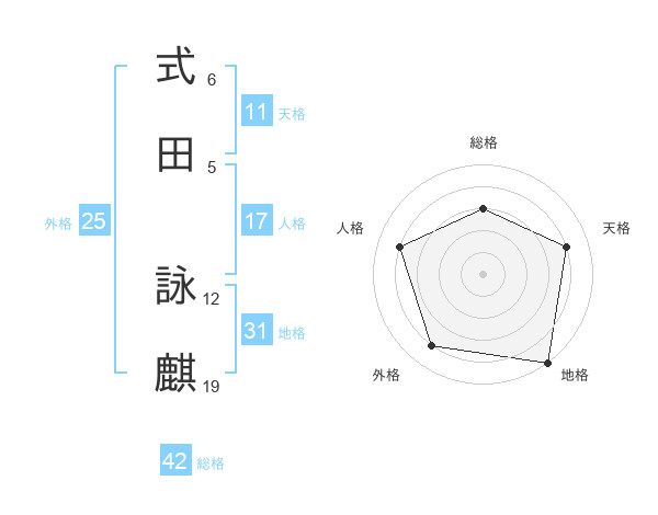 式田 詠麒さんを姓名の画数から五運を鑑定