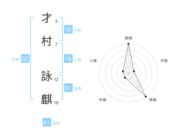 才村 詠麒さんの総格は41画の5点!