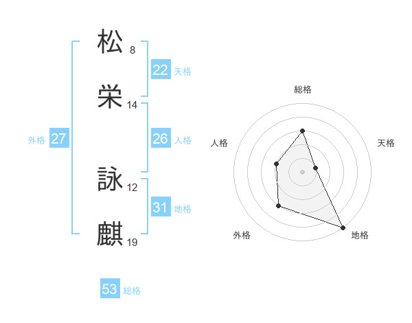 松栄 詠麒さんの総格は53画の3点!