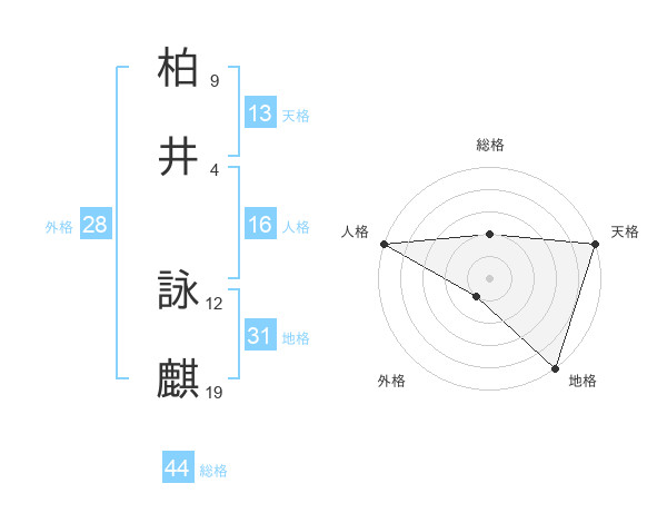 柏井 詠麒さんの天格は13画の5点!