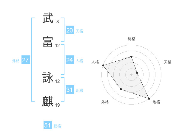 武富 詠麒さんの総格は51画の3点!