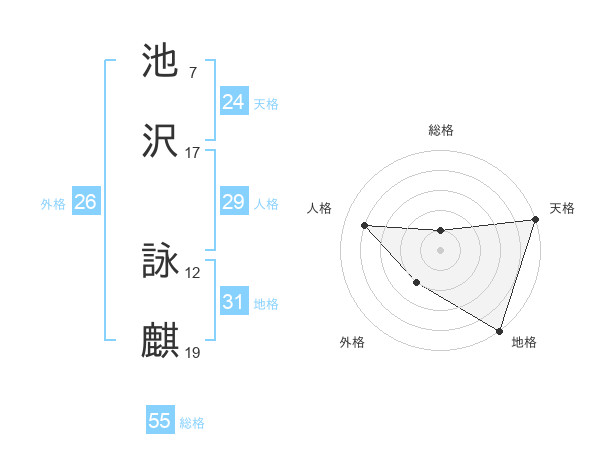池沢 詠麒さんを姓名の画数から五運を鑑定