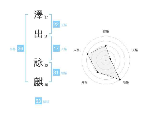 澤出 詠麒さんの総格は53画の3点!