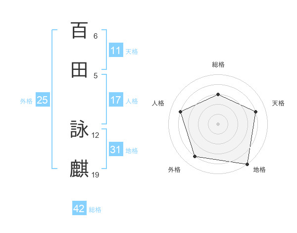 百田 詠麒さんの天格は11画の4点!