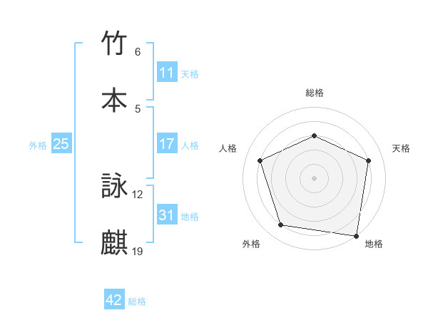 竹本 詠麒さんを姓名の画数から五運を鑑定