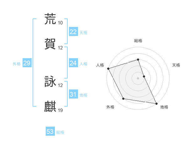 荒賀 詠麒さんを姓名の画数から五運を鑑定