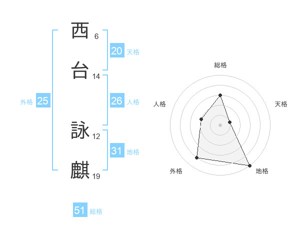 西台 詠麒さんの総格は51画の3点!