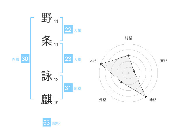 野条 詠麒さんを姓名の画数から五運を鑑定