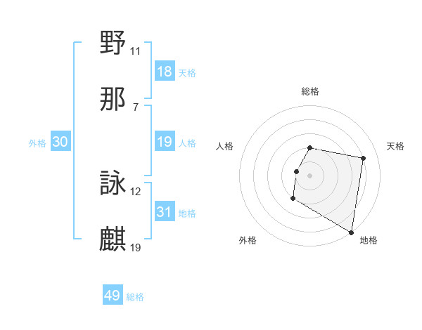 野那 詠麒さんを姓名の画数から五運を鑑定