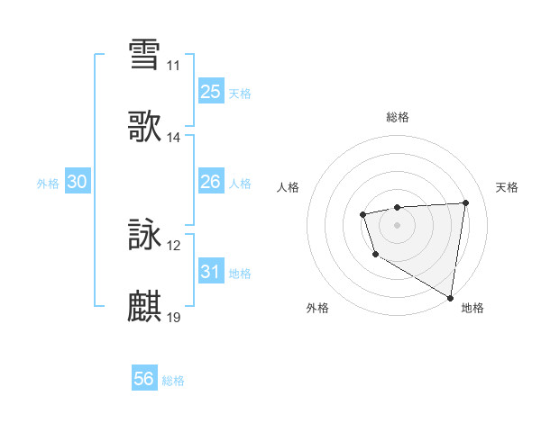 雪歌 詠麒さんの天格は25画の4点!