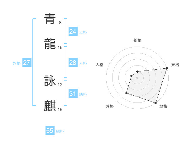 青龍 詠麒さんを姓名の画数から五運を鑑定