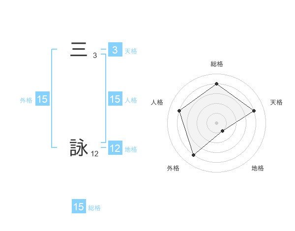 三 詠さんの外格は15画の4点!