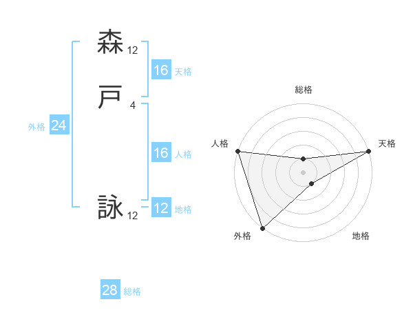 森戸 詠さんの天格は16画の5点!