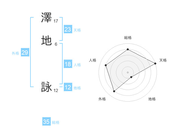澤地 詠さんの天格は23画の5点!
