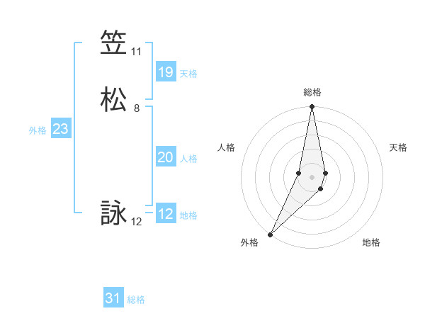 笠松 詠さんの天格は19画の1点!