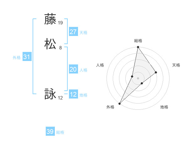 藤松 詠さんの総格は39画の5点!