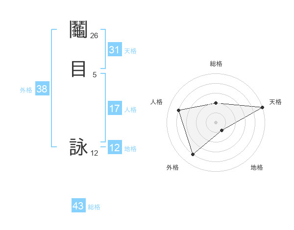 鬮目 詠さんの天格は31画の5点!
