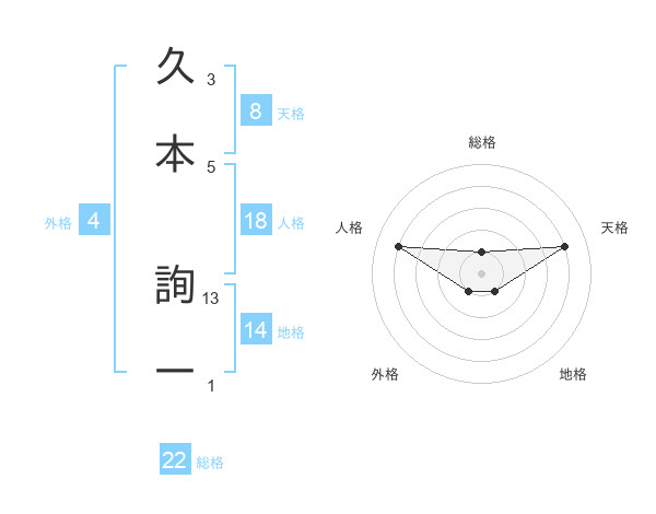 久本 詢一さんの総格は22画の1点!