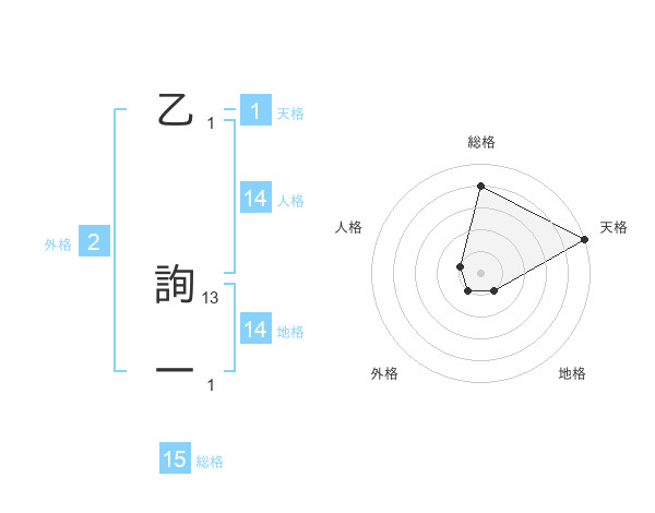 乙 詢一さんの総格は15画の4点!