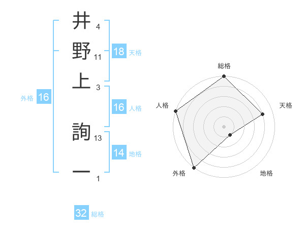 井野上 詢一さんの総格は32画の5点!