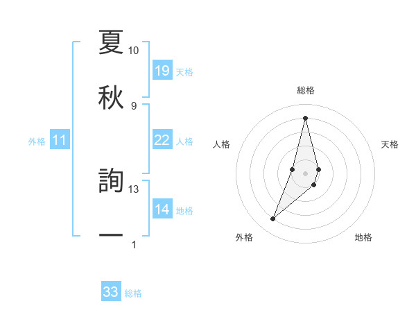 夏秋 詢一さんの総格は33画の4点!