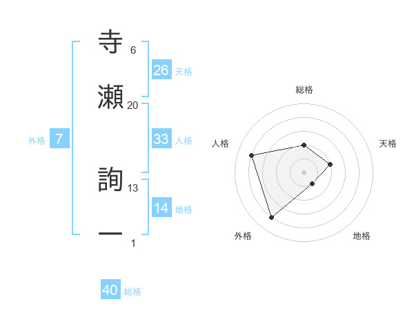 寺瀬 詢一さんの総格は40画の2点!