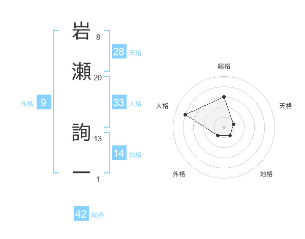 岩瀬 詢一さんの総格は42画の3点!
