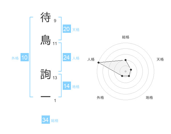 待鳥 詢一さんの総格は34画の2点!