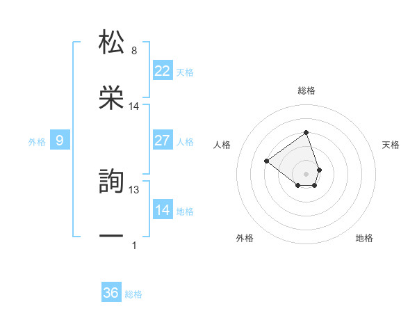 松栄 詢一さんを姓名の画数から五運を鑑定