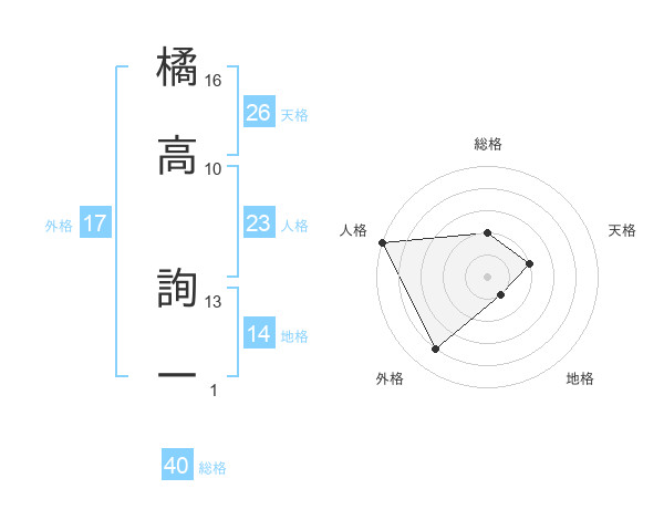 橘高 詢一さんの総格は40画の2点!